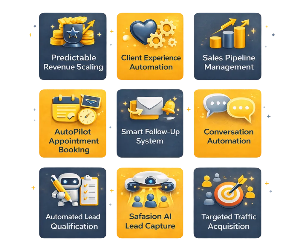 Safasion AI powers the automation layer of the Nexus Revenue Engine™. It captures leads, qualifies prospects, manages follow-ups, and helps move opportunities into your sales pipeline.